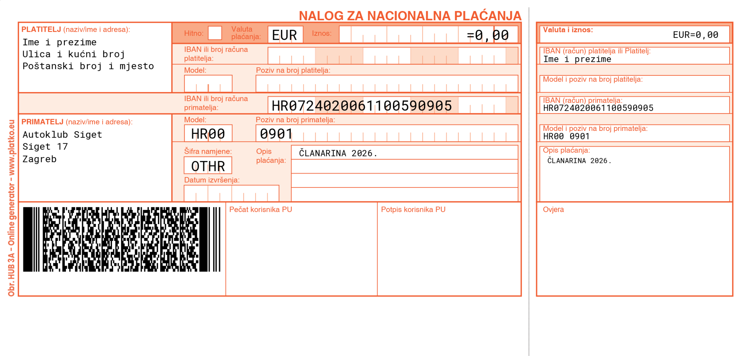 Prilikom skeniranja barkoda i izvršenja uplate, potrebno je upisati iznos odabranog članskog modela.
